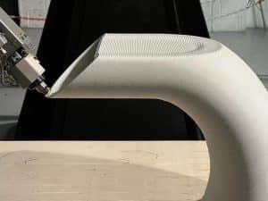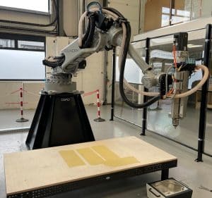 Now, at the end of 2023, I am talking to designers in the US and the Netherlands with products such as a stylised tree with a 3D printed trunk (made with pellets from post-consumer or post-industrial waste), with wooden branches and leaves stamped from reprocessed felt. It is a product made entirely of natural or 100% recycled materials. The design can be purchased, and the design file can be emailed anywhere. Printing it on a 3D printer close to the end-user cuts the carbon footprint enormously. As an extra bonus, this product also hits the mark in terms of biophilic design and acoustic benefits.