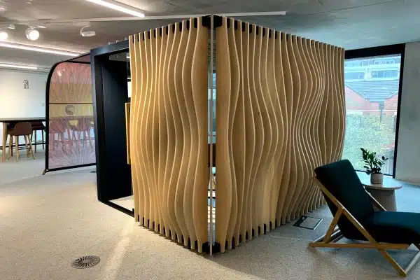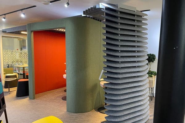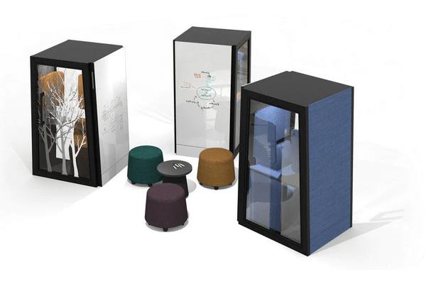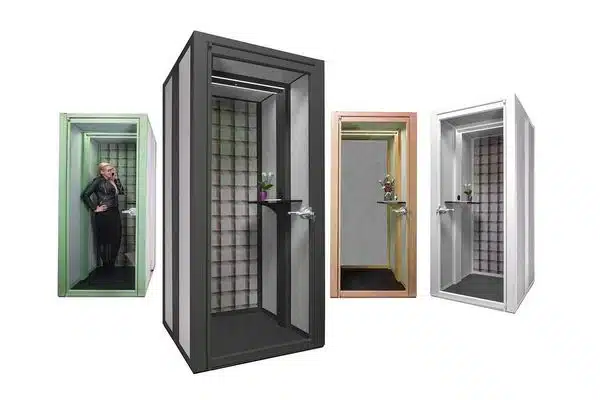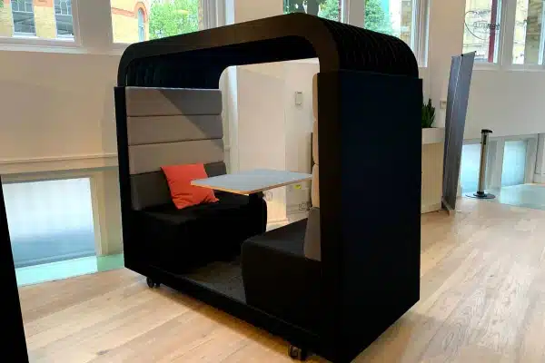 A phone box releases your meeting rooms currently being used by individuals for focused work. Available in any size to fit your available space, this phone box has been acoustically tested to BSEN ISO 140 and provides 36dB noise reduction. Standard features include twin air circulation fans, PIR-operated LED lighting and optional flush-fitted mains, USB, HDMI and charging socket modules. Use your imagination to create a colour palette that blends into the background or makes this a standout feature product.