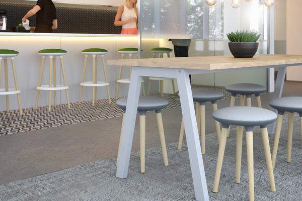 Whether you are looking for catering, breakout, touchdown or meeting zones, the Halo stool offers a stylish appearance in a choice of two heights, six trim colours and six different wood stains on the legs. Designed in Italy, they bring a modern look to any situation, whether they are in a collaboration zone, at a high table or in reception. Mix and match with complementary or contrasting fabrics.