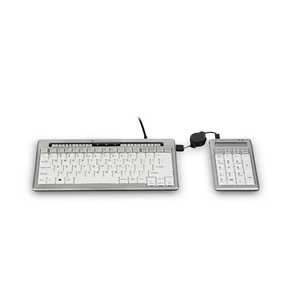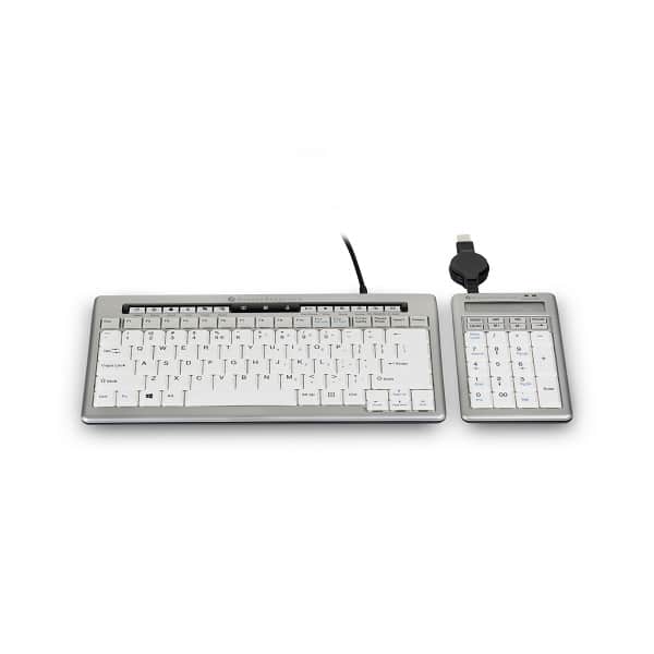 The numeric keypad can be placed either side of a keyboard, or out of the way when not in use, to support a good ergonomic desk top layout. Scissor action, soft touch keys require less force than standard keys resulting in less pressure on the fingers and contributing to increased typing speed.