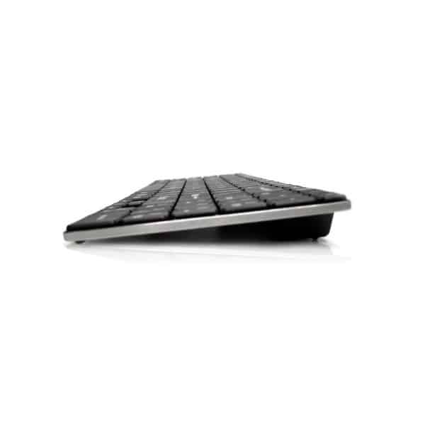 It has a low profile, responsive key action minimising strain on the fingers and aluminium casing for lightweight portability and durability. The keyboard includes hot-keys for internet, email, and audio with LED indicators for caps, battery and recharge status.