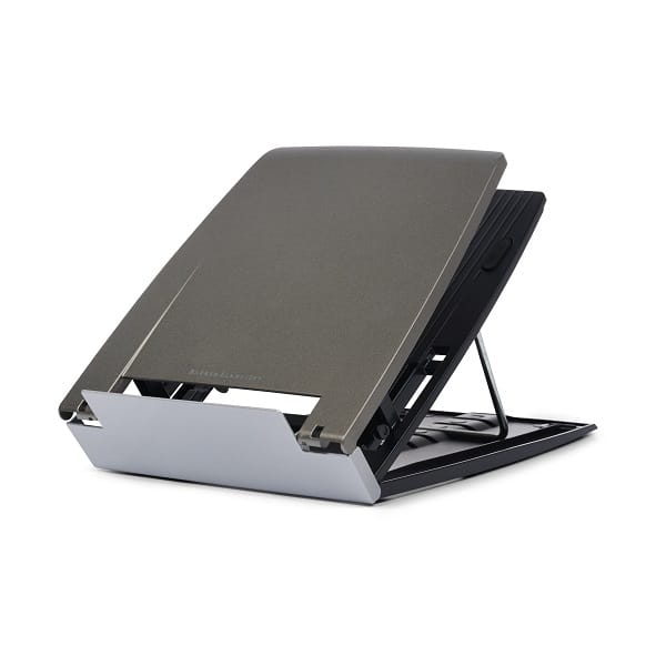 The Ergo-Q330 Laptop Stand is a lightweight portable laptop stand which allows users to raise the height of a laptop screen when working from anywhere. It has six levels of height adjustment to allow each user to adjust it to their optimum height for viewing, reducing neck and eye strain. The laptop stand has an integrated document holder which holds reference documents or digital devices in line with the laptop screen to prevent neck rotation and further improve working posture.