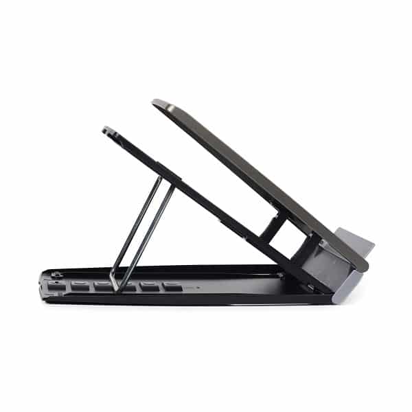 Made from high quality ABS material, the stand is sturdy, scratch resistant and durable. The stable base and the anti-slip feet on the underside ensure a firm working setup on any surface. Suitable for laptops with screens from 12”-17”.