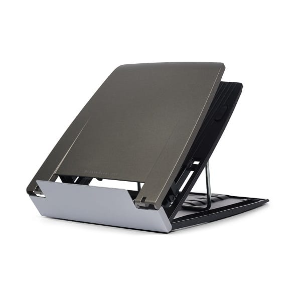 Document holder folds forward for easy laptop/notebook placement.