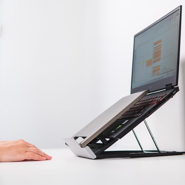 Non-slip rubber feet ensure stability for the laptop.